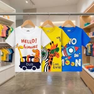 Give your little ones a reason to smile with our vibrant and playful 3 pcs T-shirt combo. Designed specifically for